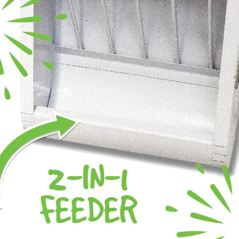 - Functional 2-in-1 feeder to supply both hay and pellets (or vegetables) to small animals